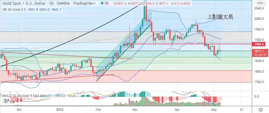 Us 10-year Treasury yields rose to the highest in nearly 5 years, gold prices fell again after a false breakthrough, expected in the short term between $1855 to $1890, but yesterday's shadow shadow is too long,