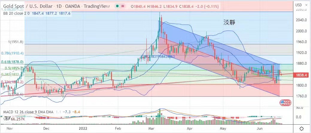 Speech, the gold market is relatively light and clean, with a volatility of less than $12. The lowest gold price once reached $1,834.8, the highest gold price reached $1,846.1, and finally closed at $1,838.4, down $2.