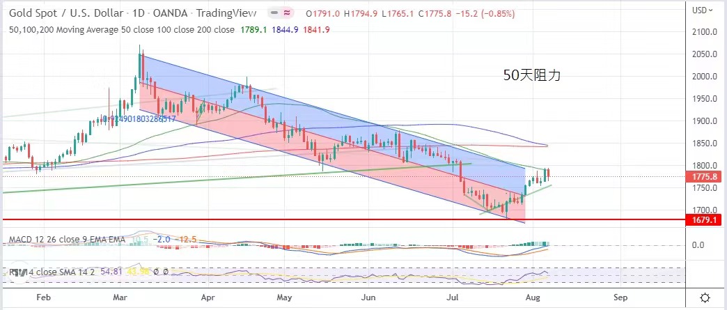 Speaker of the US House of Representatives Nancy Pelosi has completed her visit to Taiwan. During her stay in Taiwan, she met with Taiwan President Tsai Ing-wen and offered assurances that she will not break her commitment to Taiwan. Pelosi's actions provoked a huge reaction from the Chinese side. The Chinese People's Liberation Army conducted a live fire round of the island for three days immediately after Pelosi left Taiwan. The media even reported that a missile flew over Taipei. Markets are focused on whether China will follow Russia's lead and turn its military exercises into military operations, deploying the People's Liberation Army to invade Taiwan within days and take the opportunity to recover Taiwan. Last week, gold hit a low of $1,758.4 and rose as high as more than $1,795 on the Taiwan tensions, but the better-than-expected non-farm data gave up most of its gains on Friday to close at $1,775.8, still up $9.50 on a weekly basis.
