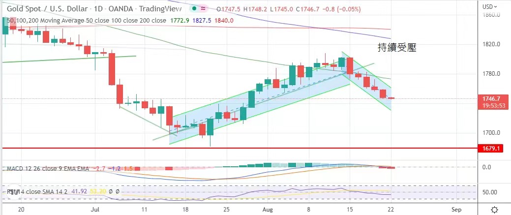 The U.S. dollar index continued to rise above the 108-point level, and the gold price was pressed by the strong performance of the U.S. dollar. Last week, it fell for five trading days and closed at $1,747.5.