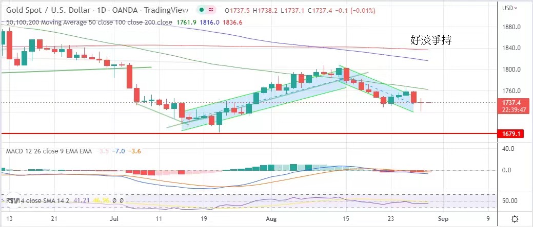 After continuous fermentation, the price of gold was once at its lowest level in a month, and the lowest price was 1720.4. However, after entering the European market, many European officials expressed their support for raising the interest rate by 75 points in September.