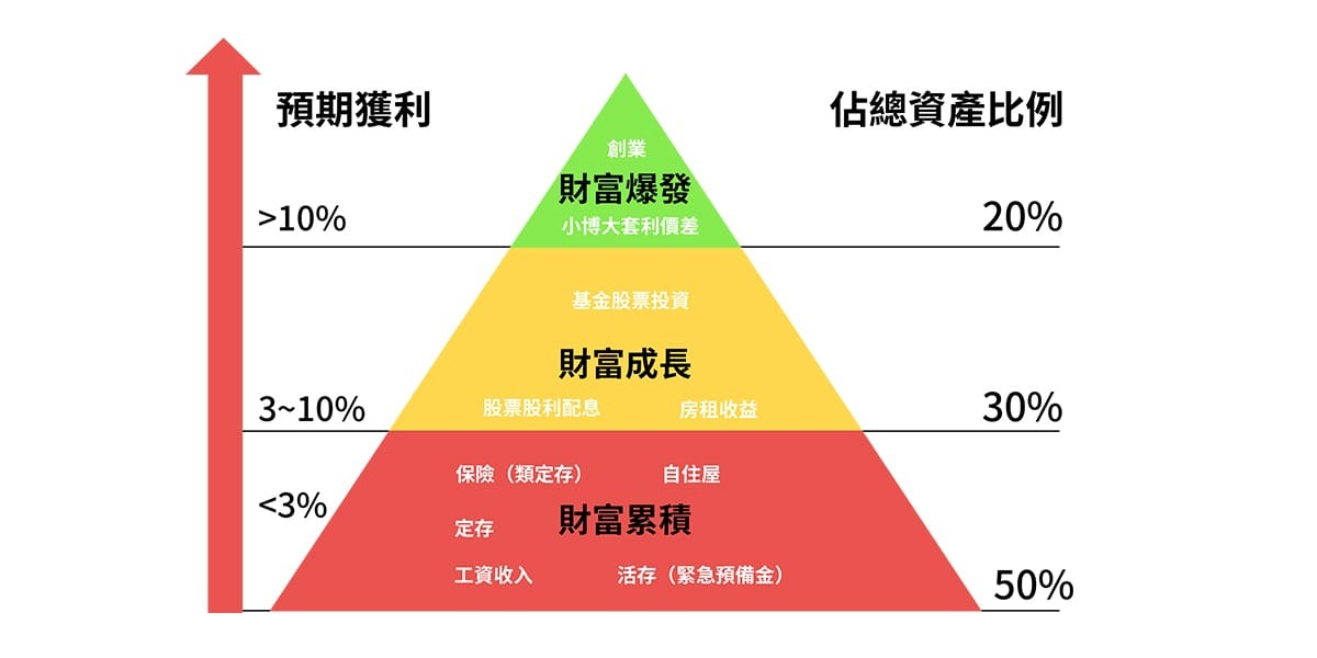 Through the financial pyramid, you can allocate your funds more effectively. Even if you have never learned financial wisdom, you can beat the market by accumulating and creating wealth in this way.