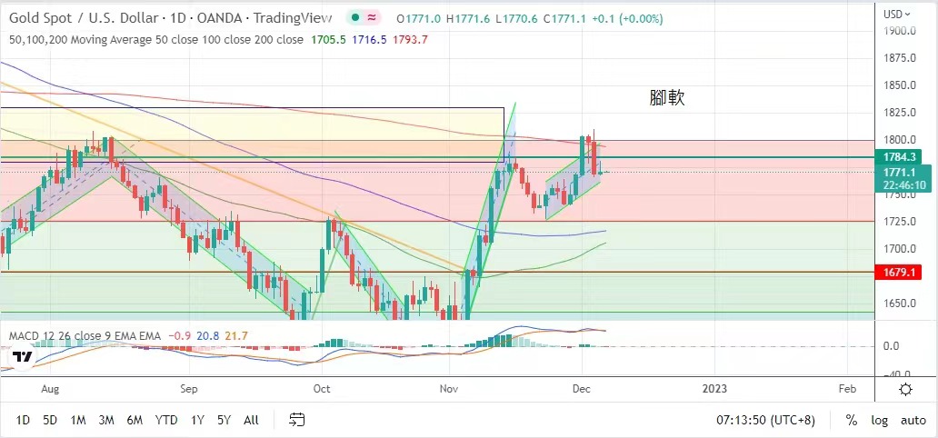 Yesterday, the highest price of gold was $1,780.9, but there was obvious pressure. The lowest price of gold was $1,767.4, and finally it closed at $1,771, up $2.2.