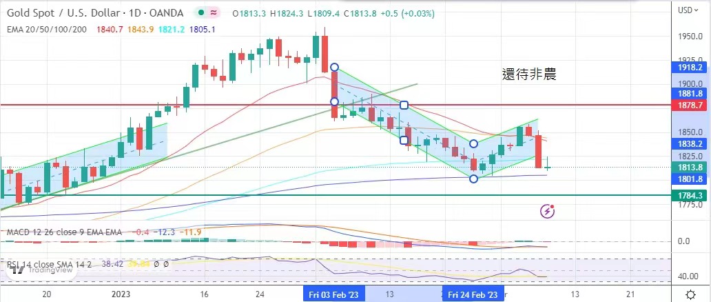 The opening of the market continued to fall, reaching a minimum of $1,809.4, and the number of small non-agricultural data released last night increased by 242,000, which was much higher than market expectations.