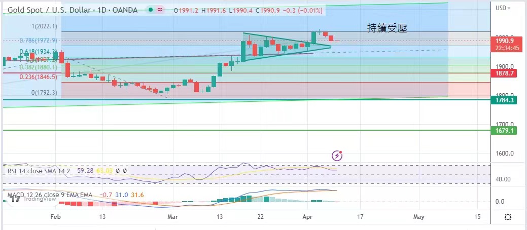 Weak, the lowest price of gold was $1981.7, which closed at $1991.2, down $16.7.