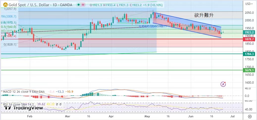 It has been clearly stated that there are still two interest rate hikes this year, and the investor's budget is not excessive. The price of gold fluctuated around $1,920, and this week there is Midland.