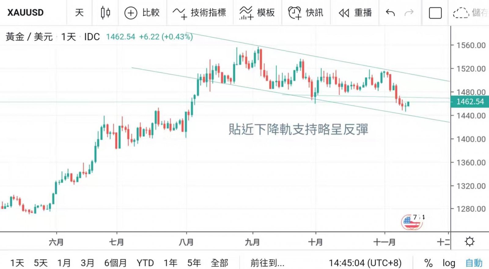 美國統昨晚再度炮轟美聯儲反應過慢,再向美聯儲施壓減息,消息刺激金價反彈向上,金價昨晚反彈至1460前止步,但今晨再向上企穩於1460上方徘徊。
