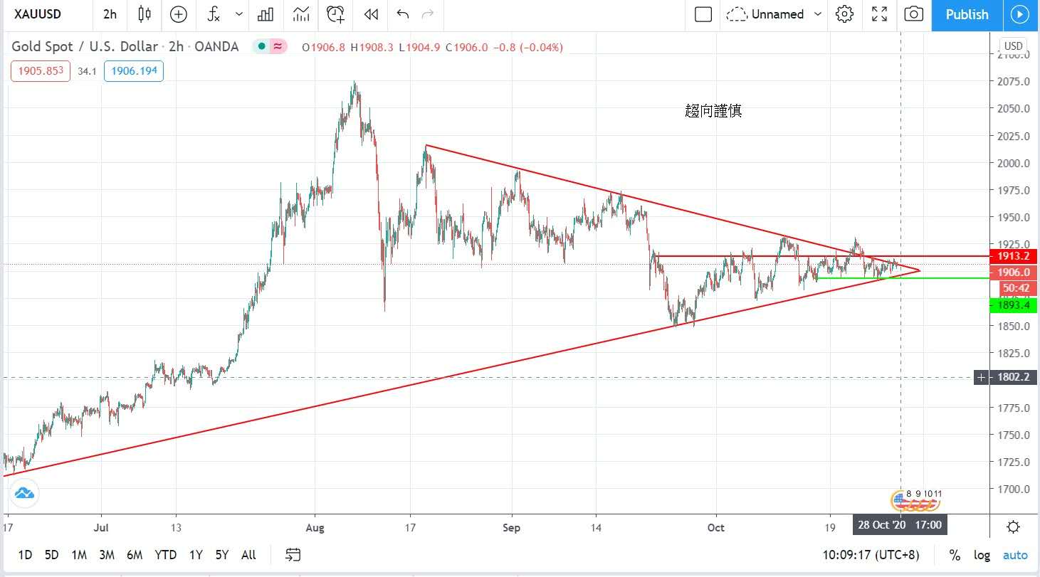The highest is only up to $1,909 per ounce, and the lowest is $1,898 per ounce. The deterioration of the COVID-19 epidemic in Europe and America was beneficial to improve the safe-haven function of gold, but the US dollar index returned to the level of 93 points, suppressing the increase of gold price, and the presidential election is just around the corner.