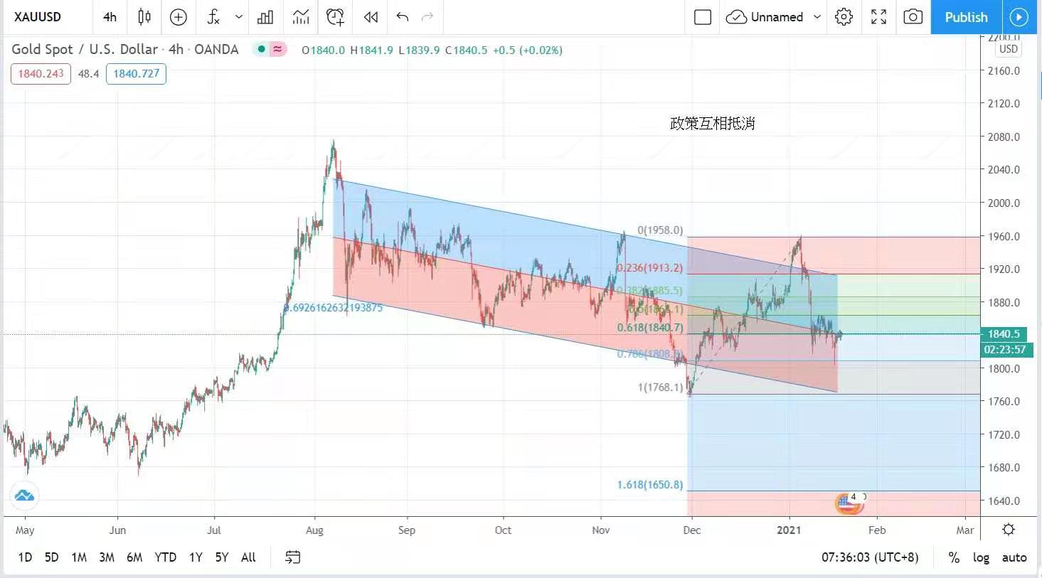 Policies offset each other's influence on gold market. It is expected that the price of gold will continue to struggle between 1820 and 1850 in the short term, and it is expected to fluctuate today. The suggested volatility is between 1833 and 1850 US dollars, and it can be chased after rising above 1850.