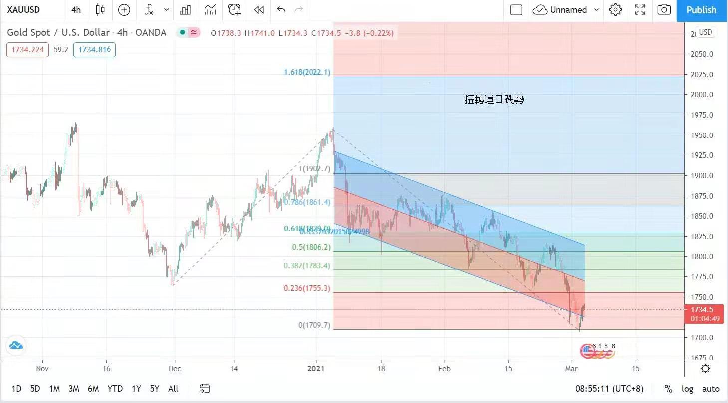 Gold price reversed its daily decline yesterday. Biden's $1.9 trillion economic stimulus plan will eventually stimulate inflation. Whether the US dollar turns first will affect gold price. Pay attention to the Fed's decision and remarks on raising interest rates.