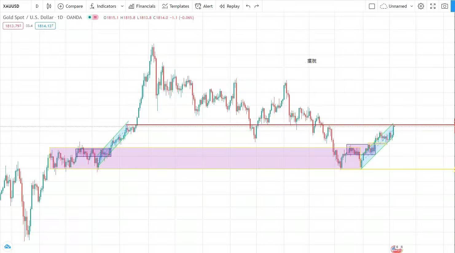 I couldn't think of three days before I passed a level, and the resistance of $1,818 on the red line of the chart yesterday only softened. As long as the market outlook stabilizes, it will cost $1,800 upstairs and $1,848 at the next stop. Today's proposed amplitude is between 1803 and 1826.