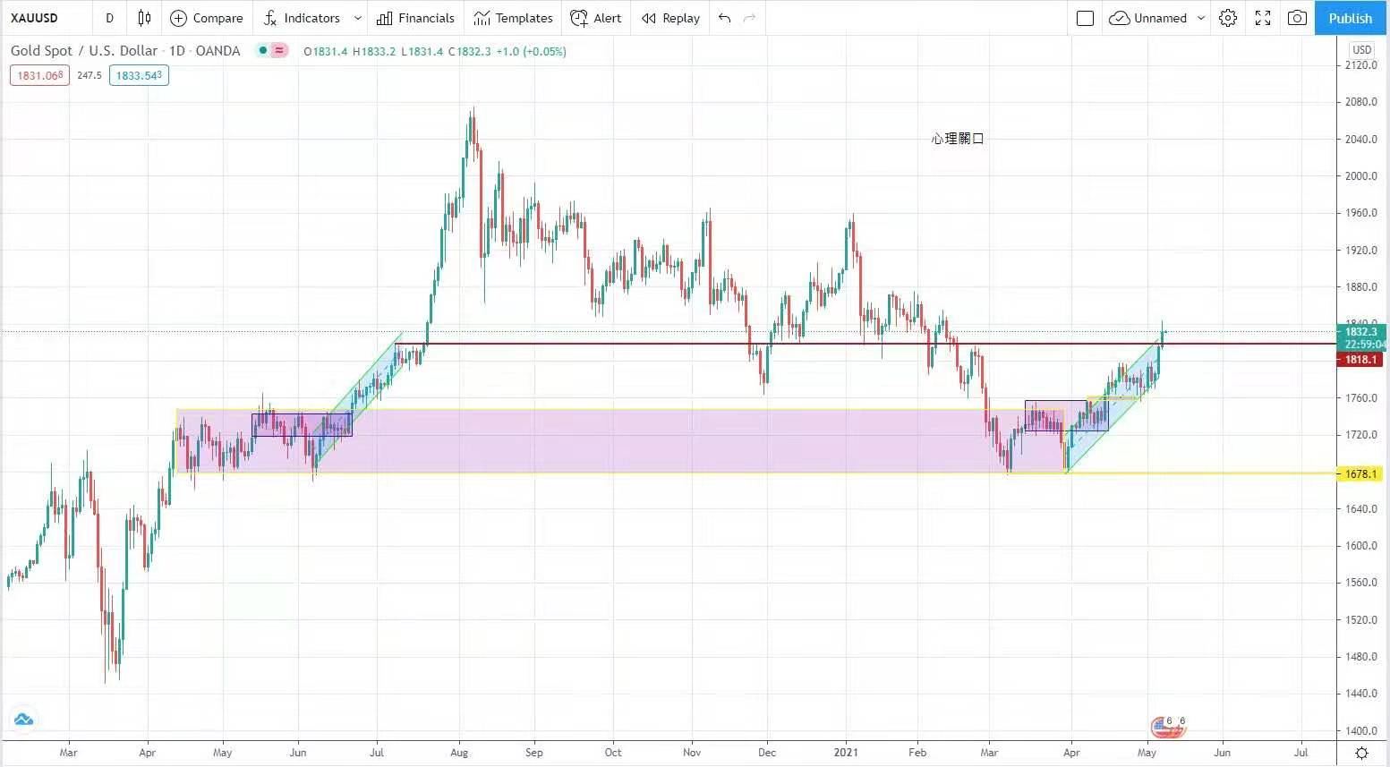 However, the Federal Reserve Bureau hinted that it would not raise interest rates to cope with inflation in the short term, and the Taiwan Strait issue made Sino-US relations more tense, so the gold price could still be seen as higher, and the target of $1,848 in the next stop remained unchanged.
