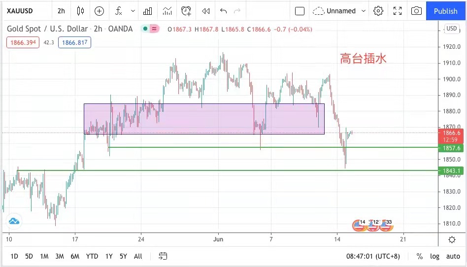 From yesterday's high of $1,878, it plunged into more than $30 to $1,845, and rebounded after the opening of the US market. The rebound strength was also strong, and it was more than 20 US dollars to play. It was like riding a roller coaster together, and finally closed at $1,866, down $12.