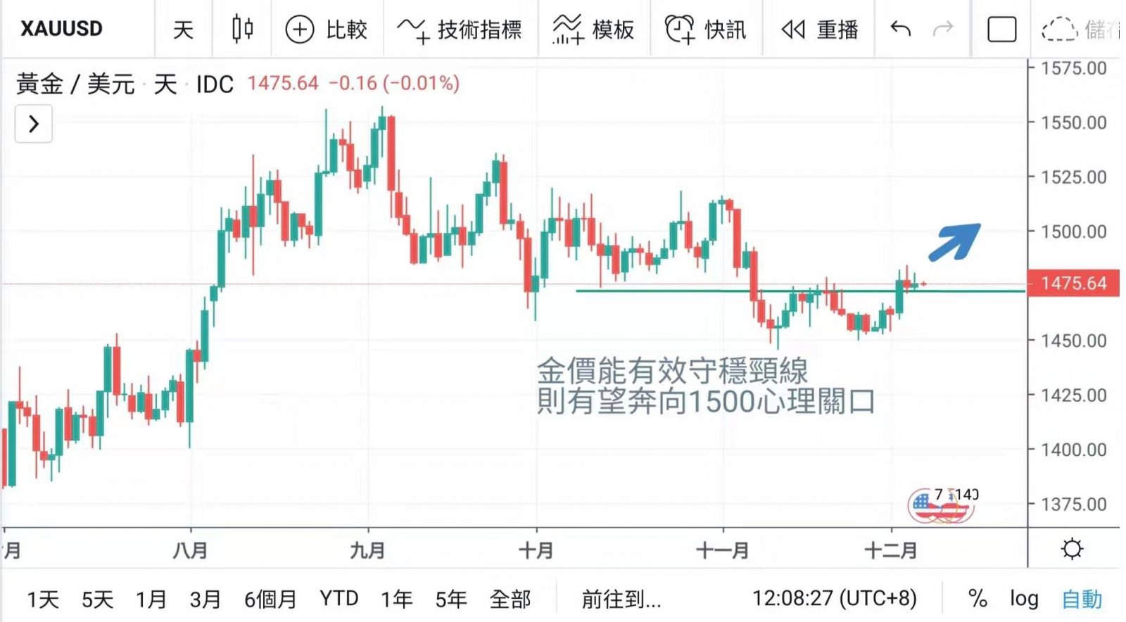 下方實體買盤仍支持低位回升的走勢,但年內能否重上1500美元收盤,仍是未知之數。