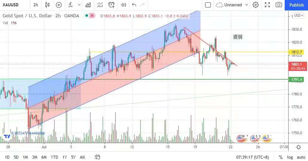 Under the support of $1800. Today's proposed amplitude is between 1792 and 1812. In addition to inflation and employment data and the results of the Fed's interest rate decision, investors may need to observe the money supply more macroscopically.