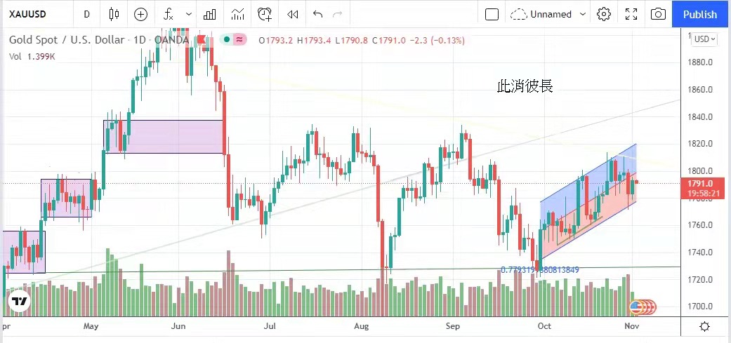 The Federal Reserve Bank and the Bank of England raised interest rates early, which changed, and the US dollar was under pressure. In addition, the US dollar rose too fast last Friday, and investors took profits. The US dollar index fell, and the price of gold rose repeatedly, which was the highest yesterday.