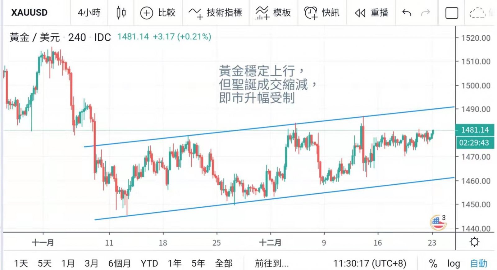 今晨見金價又再測試此水平,若能順利突破,金價元旦後仍能保持衝擊1500關口可行性。