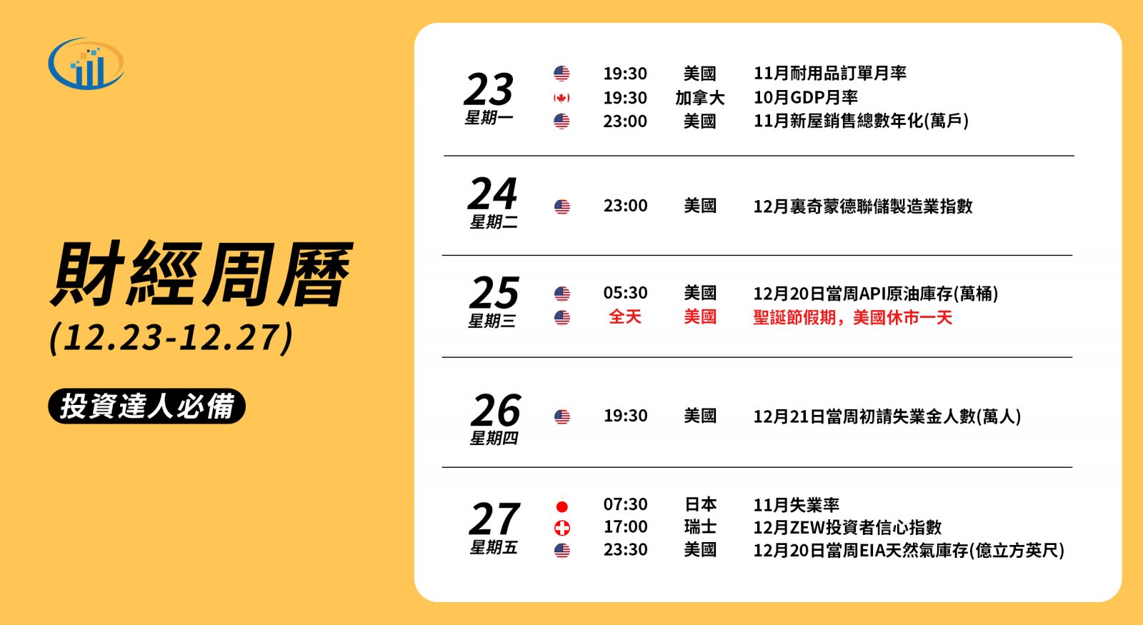 本週為聖誕節假期,市場交投將轉趨淡靜;