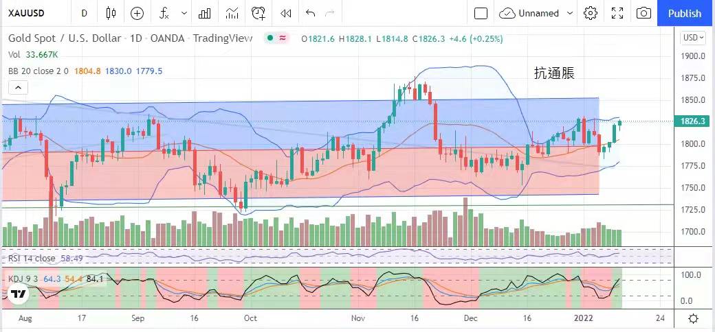 Pressure, the lowest price of gold was 1814.8 yesterday. After the inflation data was released, the highest price of gold was 1828.1 USD, and finally it closed at 1826.2 USD, up 4.6 USD.