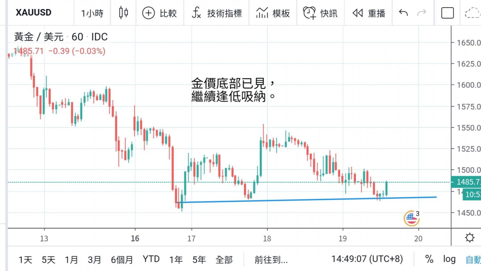 相信再破低机会不高,但美元上升,亦难令金价从此大幅向上,技术上金价需时于1500下方整固,有望逐级靠稳,