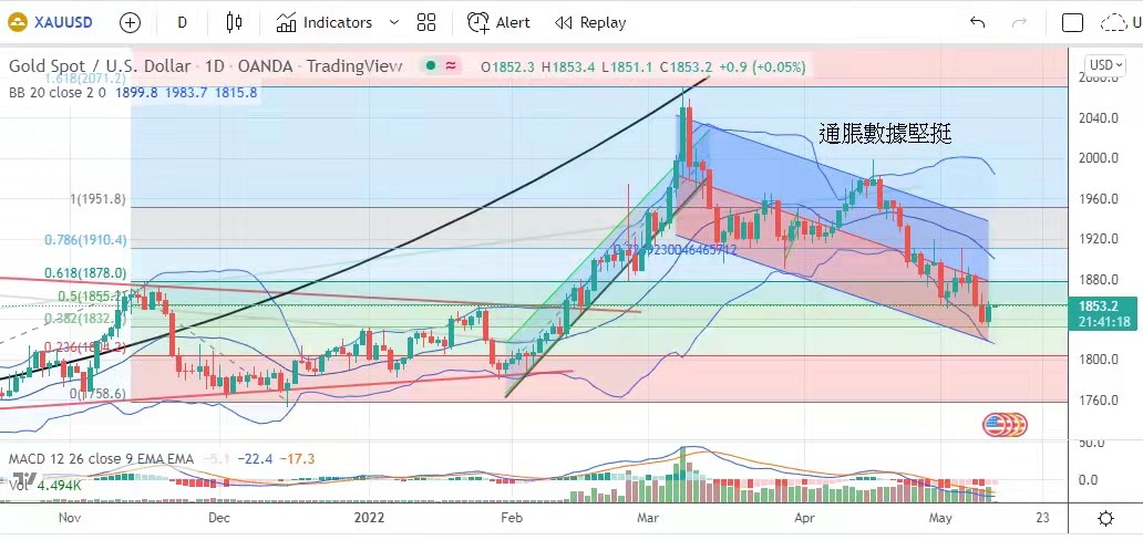 国际原油及天然气价格急涨,加上比特币曾跌穿28000美元关口,刺激了投资者对黄金抗通胀的兴趣,而昨晚公布的4月消费物价指数按年上涨8.3%,