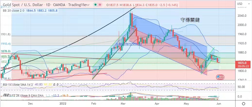 在1840美元的韧力,金价在1832美元变得更关键,跌破则可能要点再试1800美元的支持。今日建议波幅1830美元至1846美元。