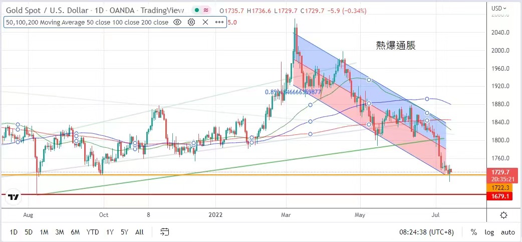 测度联储局会仿傚的机率大增,金价曾跌至1707美元,但之后急速反弹,显示金价在1700美元有较大支持。金价短期仍