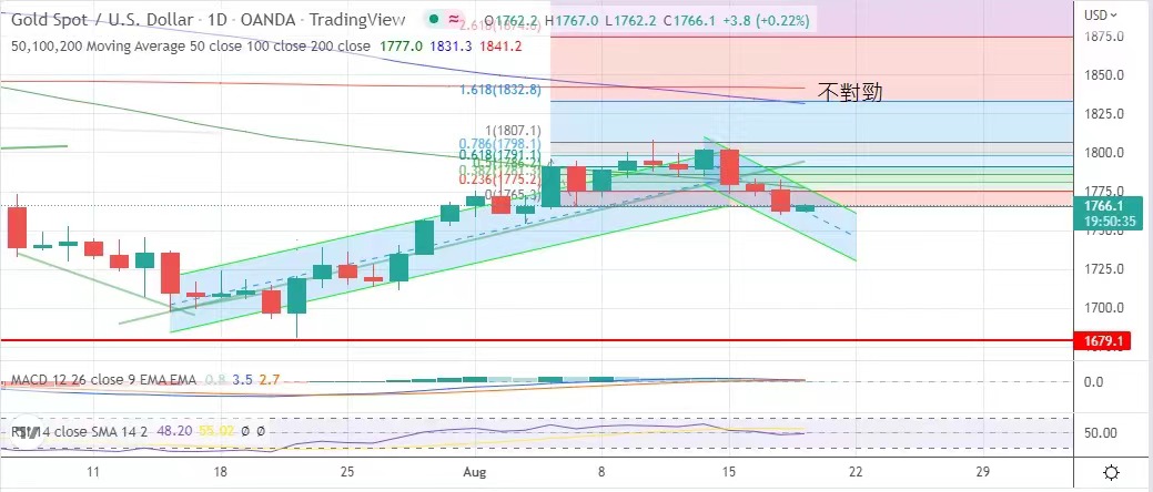 1770美元,可惜事与愿违,加息去打击通胀仍是联储局的目的,十年期国债孳息率上升,多头再遭迎头痛击,以17