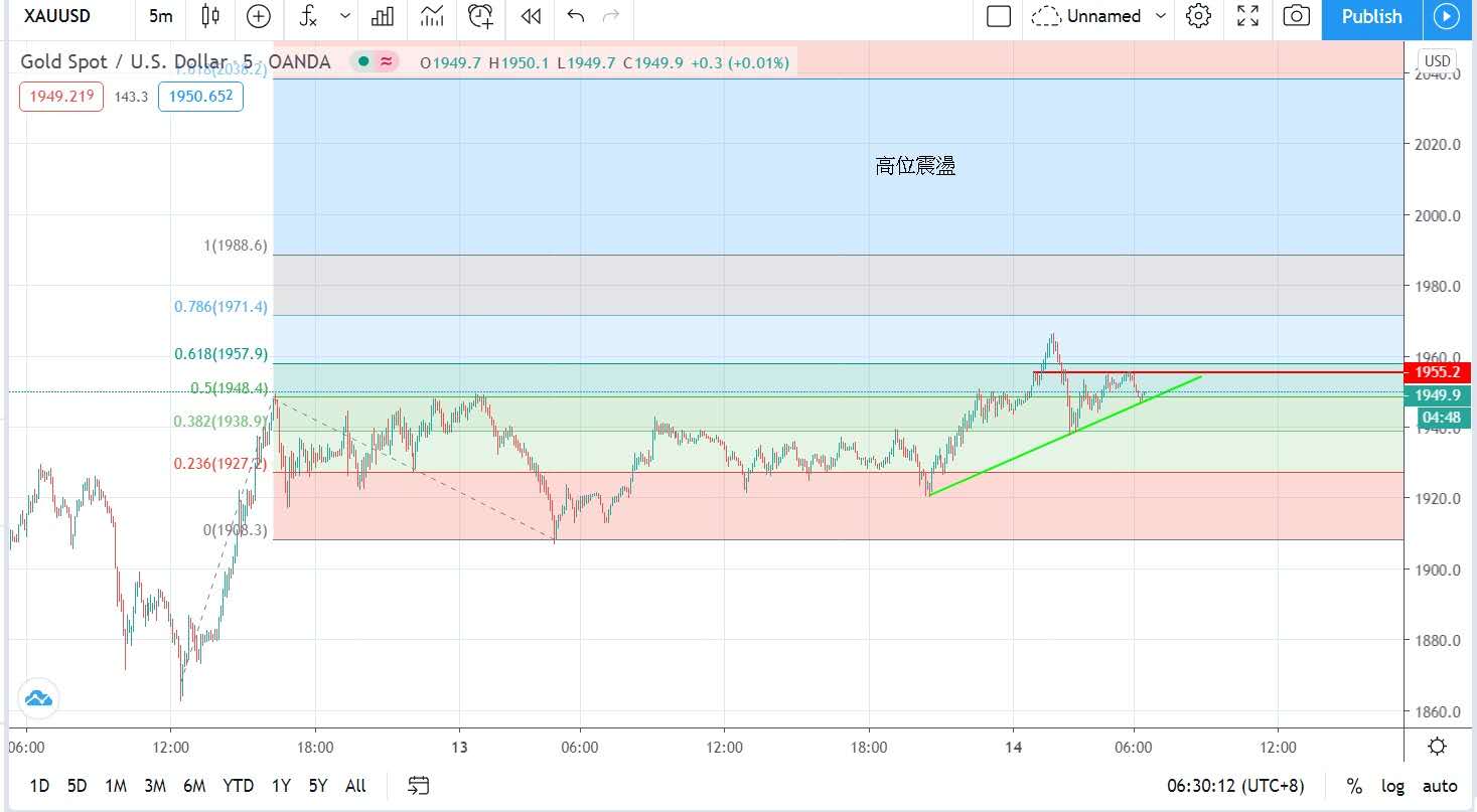 金价承接昨日反弹,再现升势,最高升至每盎司1965美元,收市报每盎司1953美元,升37美元。