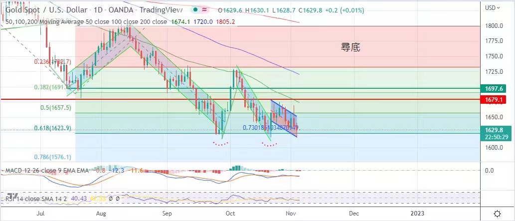 显示美国本土就业市场强劲,这将影响美联储在十二月加息的态度,金市再次寻底,金价昨日最高见1641美元,最低