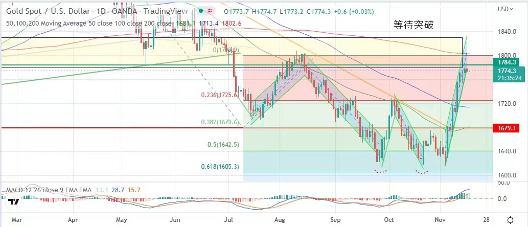 而市场亦逐步消化了此讯息,美元强势告一段落,金市基调仍然看好,金市近日高位盘旋,势似等待突破。今日