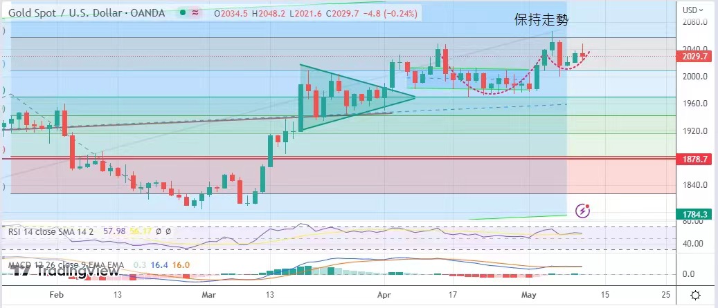 联储暂停加息的决定。金市在通脤数据公布后如坐过山车,金价最高见曾2048.2美元,最低见2021.6美元,最终