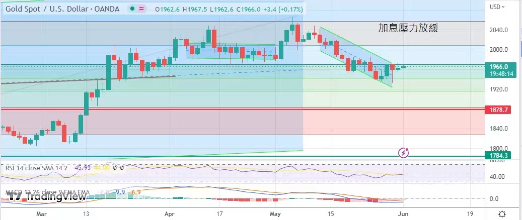 的加息考虑,依市场分析,美国劳动力市场已开始放缓,预料6月加息的机会不大;至于美国债务上限的投