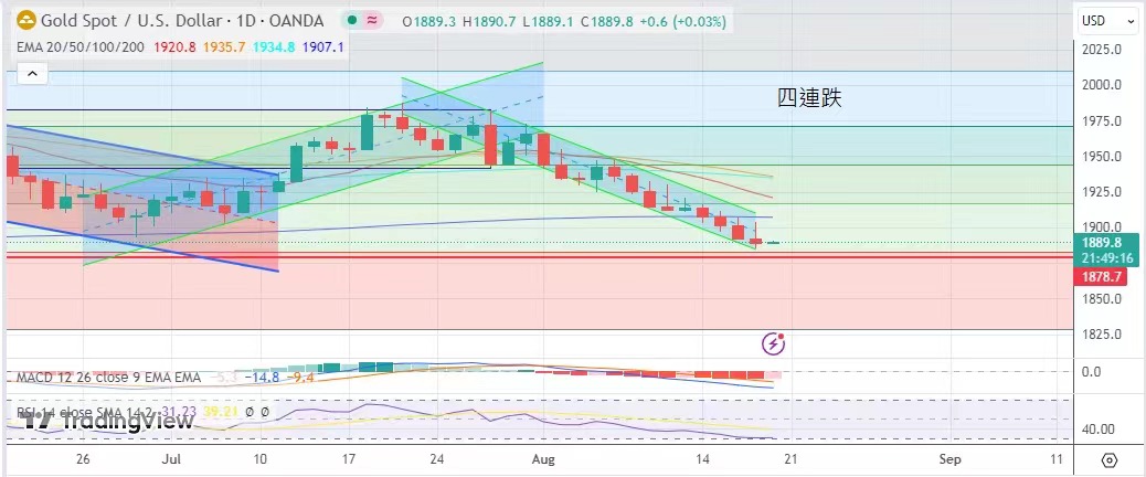 申领失业人数低于市场预期,令联储局鹰派的声势扩大,金价消耗式下跌,空头仍继续主宰著金市。今日维