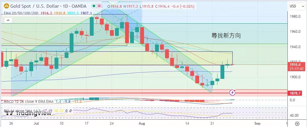 收窄,金价最高见1923.4美元,最低见1911.8美元,收于1916.8美元,升1.4美元。