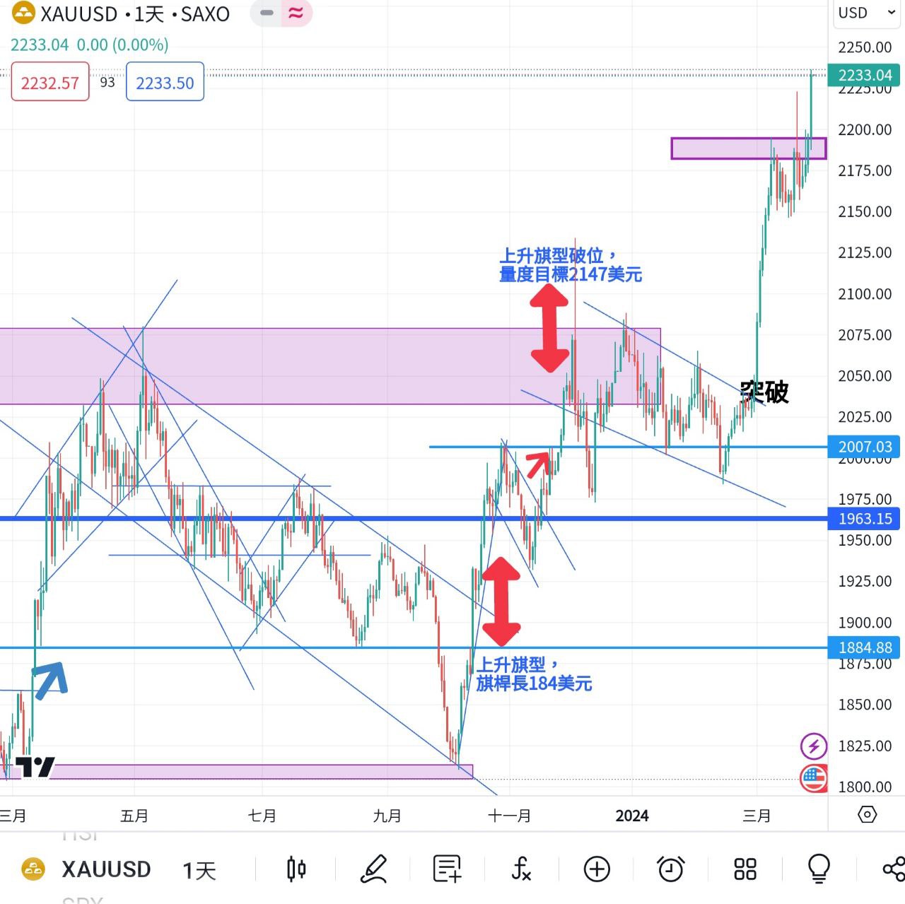 金价月内3度刷新高,牛气冲天。黄金迎来2024完满的第一季表现,在3月份的4个星期中,有3个星期刷出历史新高,尽管每次刷新高后出现过震荡回吐,但每次回吐不会超过两个交易日,便又再向上爬升,走势凌励,落错车恐怕亦难以再上车。上周市场开始步入复活节假期,但无减市场投资气氛,在憧憬环球减息期临近,所有资产价格已步入热炒期,在虚拟货币率先爆上及瑞士央行意外提早减息后,可谓将这炽热市场再耍上滚油,资金轮流炒落后,辗转不同市场板块,金价对比旧年底高位,升幅可算不大,相对日经美股等,金价较为落后,令季结前,金价受到青睐,上周黄金日线图全以阳烛收市,并且在周四获得更大动力爬升,直升至收市前仍创新高,技术上,虽有超买讯号,但却未有见顶迹象。周五晚PCE恰如预期,通胀未有恶化,亦难以扭转金价涨势。展望本周,劳工数据将为金价升势带来考验,近期劳工市场仍算相当旺盛,若未见非农回落,美联储仍有可能较长时间维持息口不变,从而打压金价升势。市况点睇,不妨互相参考一下。
