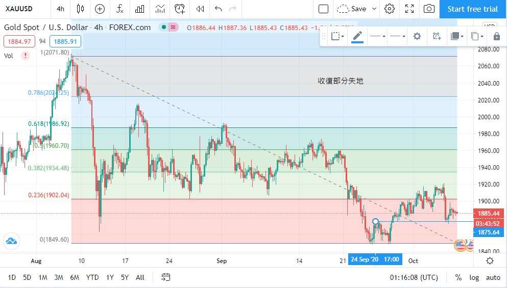金价昨日也随美国总统特朗普的最新贴文而反弹,预期新一轮财政刺激方案会有进展,金价最高升至每盎司1898美元,最低见每盎司1873美元,以每盎司1888美元报收,涨10美元。