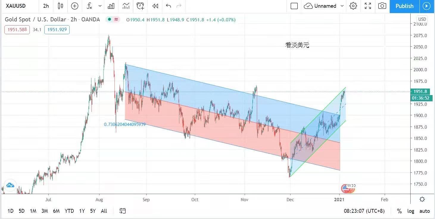 投资者预计美国下任政府将更容昜达成量宽加大政策,看淡美元前境,美元指数昨日曾再度跌破89.5水平。金价昨日早段回调至每盎司1934美元,但美元持续弱势令金价转跌为升,最高见每盎司1953美元,