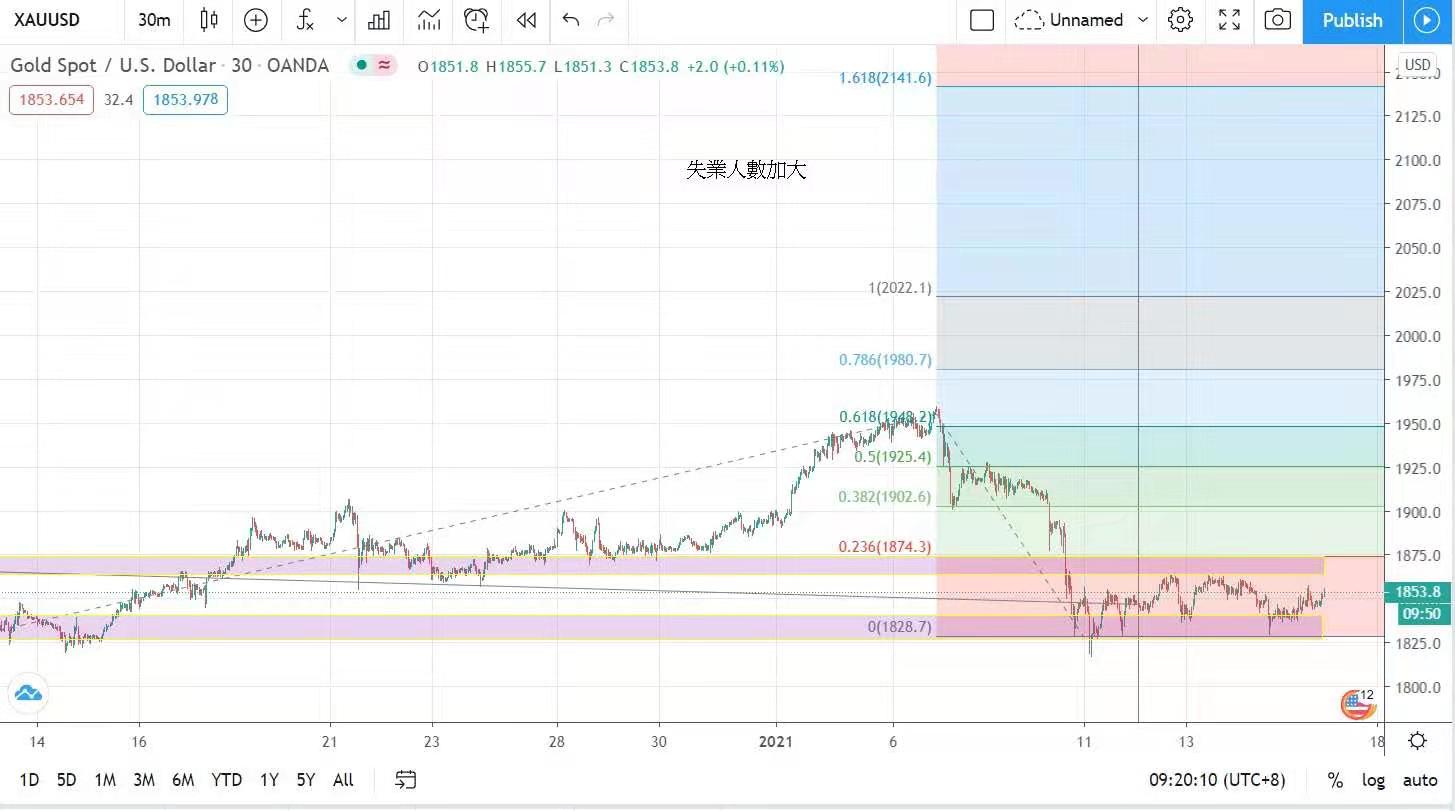 数据公布后,曾一度刺激金价上升至每盎司1858美元,但市场担心厢庞大的刺激方案将推美国国库债债券息率,限制金价昨日升幅,最后以每盎司1846美元报收,微升了1美元。
