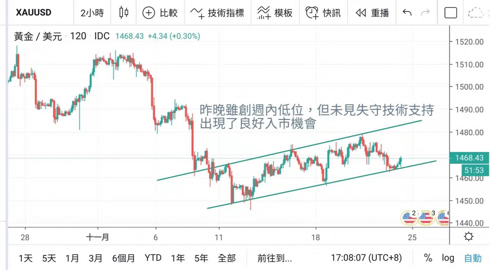 显示特朗普亦有心为贸易协议立下良好基础,金价因此渐见受压,金价上方未能攻克1482阻力后,昨晚越走越低,即市及收盘价计算,亦刷新了周内低点。