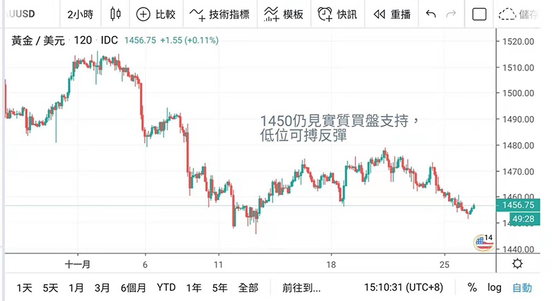 言论意味寛松货币政策会较长时间得以维持,并有机会再于未来调寛息口,因此见金价于昨日的跌势中得到企稳。