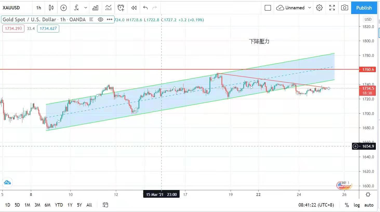 美国财长耶伦及联储局主席鲍威尔对美国经济前景乐观,刺激美元受追捧,金价将继续承压。今日建议波幅在1725-1741之间。