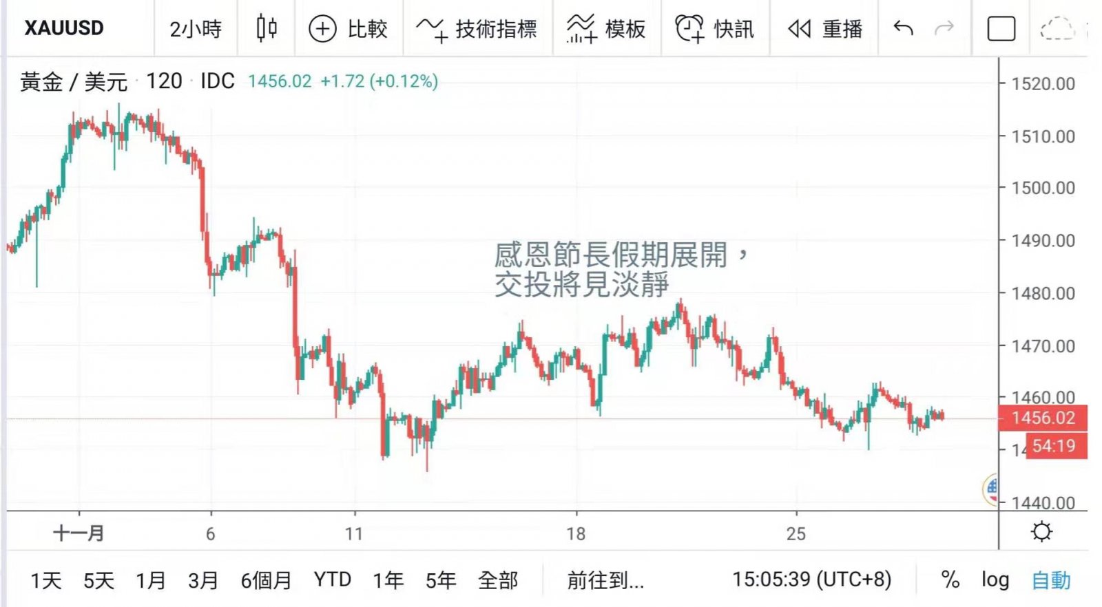 美国感恩节假期展开,今晚起市况将会较为交投疏落,由于未有经济数据公布,