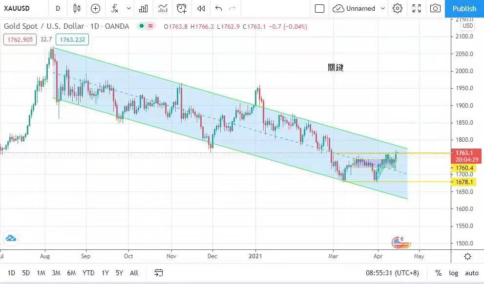 的1764美元关口,但收市刚好收于该位置,是考验是吾顶底倒转的关键时刻。地缘政治冲突不是一两天能轻易解决的问题,