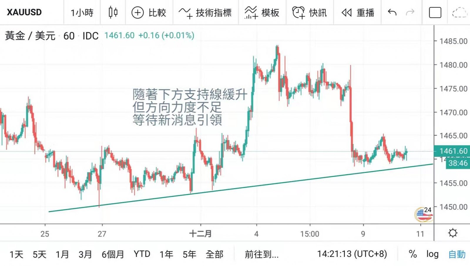 此升势有望于2020年延续,而中长线上,第四季度的调整属健康的整固回调。金价已持续于1450下方出现实质买盘支持,此区间买盘将承托金价往后升势,