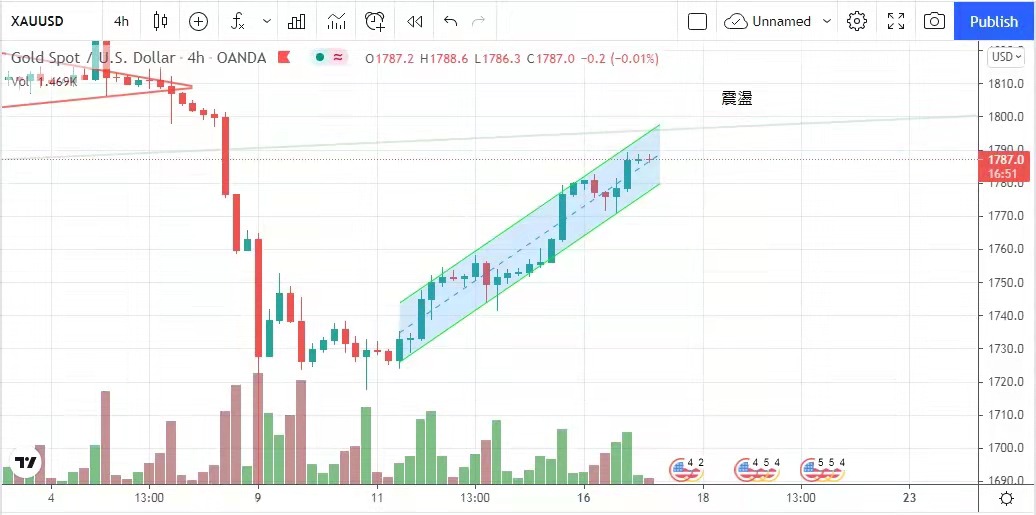 金市承接上星期升勢上升,加上塔利班火速佔領阿富汗,中東混亂局勢刺激了金價上升,金價最高見1789美元,最低價見1771美元,昨日收於1787美元,升7美元。