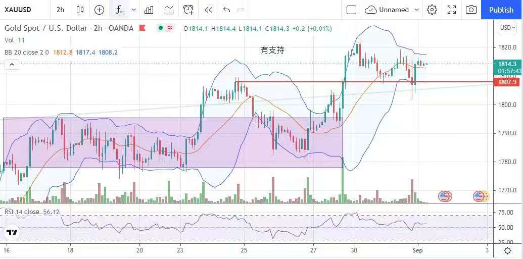 昨日金价下试1800美元,但明显有支持,今日或再试上月月底高位,建议波幅在1804-1823之间。