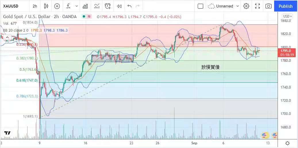 欧洲央行议息成昨日焦点,欧洲央行维持关键利率不变,但将放慢买债速度,欧元兑美元下跌,加上美国就业数据理想,投资者忧虑美联储将提早减少买债,黄金亦因而受累,但跌至1780下方仍有支持,反映周一金价的调整深度已计算美联储缩表在即,之后发展反而是看美联储的减买幅度及速度。今日预料仍将震荡,建议波幅在1782-1798美元之间。