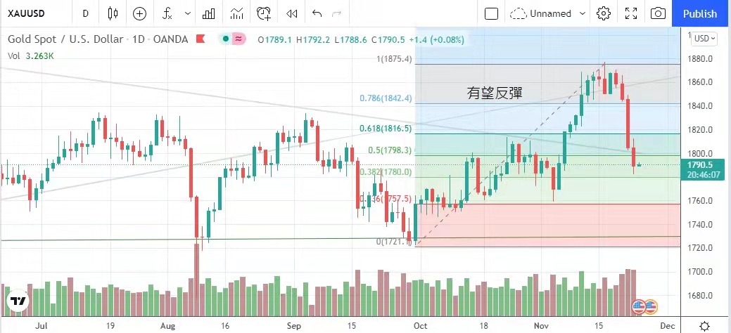鲍威尔获续任,市场预期美联储将加息的消息持续升温,十年期美国债券孳息率升至1.65%,打压金市,金价续第四天下跌,昨日更跌穿1800美元