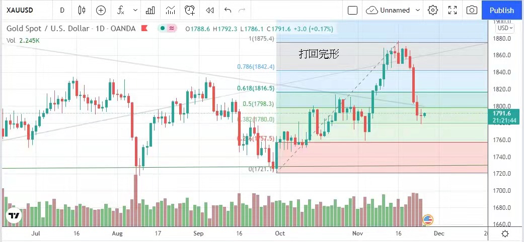 再加据,金价最终打回完形。市场已消化美联储提前加息的消息,可能要到12月的议息会议才有进一步指示,金价才再较大反应。但金价已是弱势,